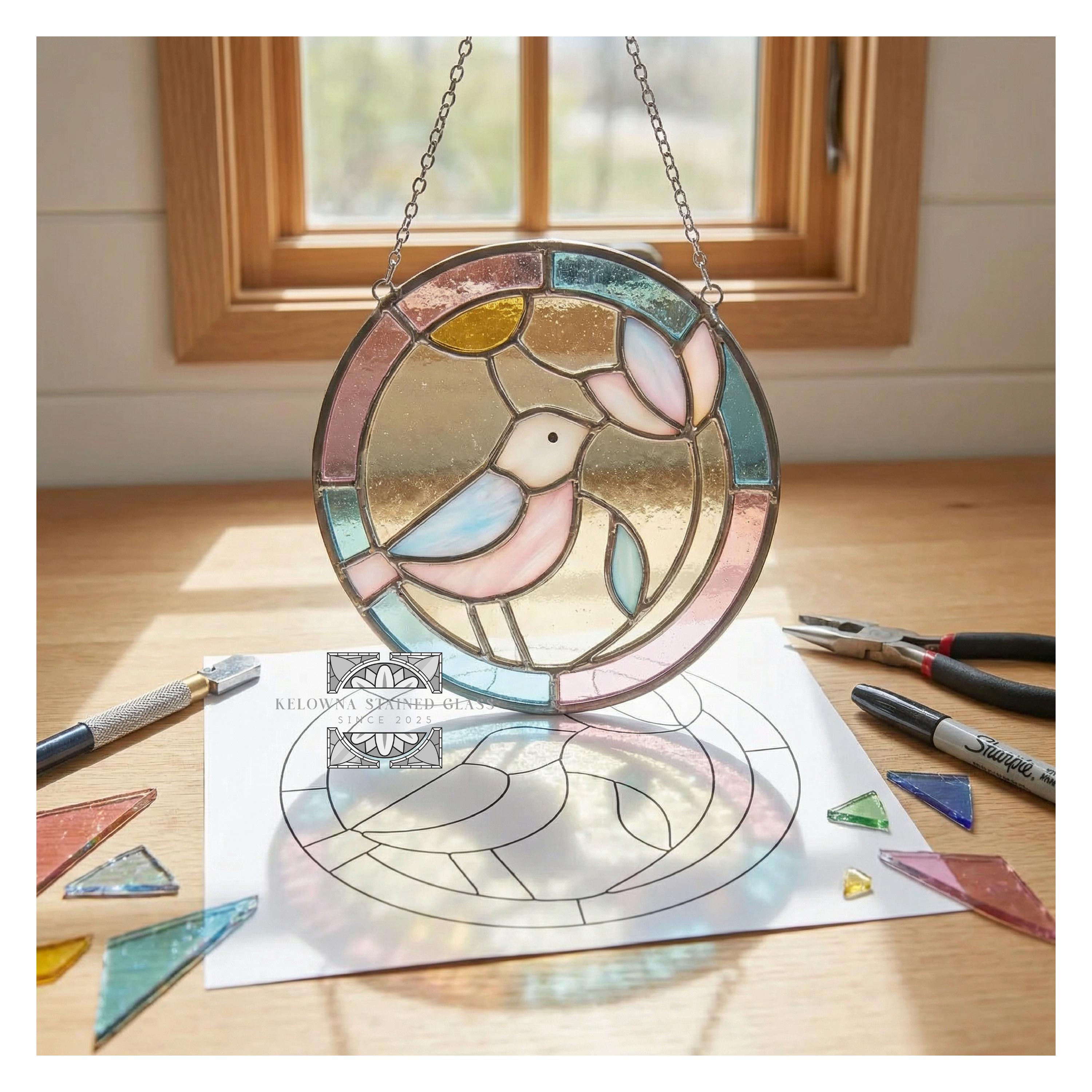 • You are welcome to sell finished stained glass pieces created from this pattern. • The digital pattern file itself may not be resold, redistributed, shared, or given away. • Copyright remains with the artist.