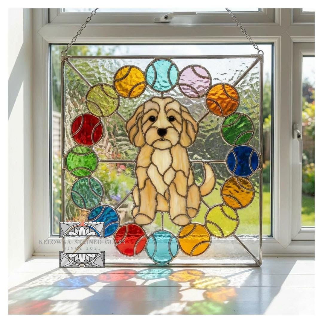 Celebrate the playful personality of your favourite pup with this adorable cockapoo and balls stained glass pattern! Measuring 12 inches long by 11.5 inches wide, this digital PDF design features a cute cockapoo surrounded by colourful balls—perfect for creating a cheerful sun catcher, window decoration, or unique handmade gift. The intermediate-friendly pattern includes bold lines and simple sections for easy assembly, making it fun for crafters of varying skill levels.
