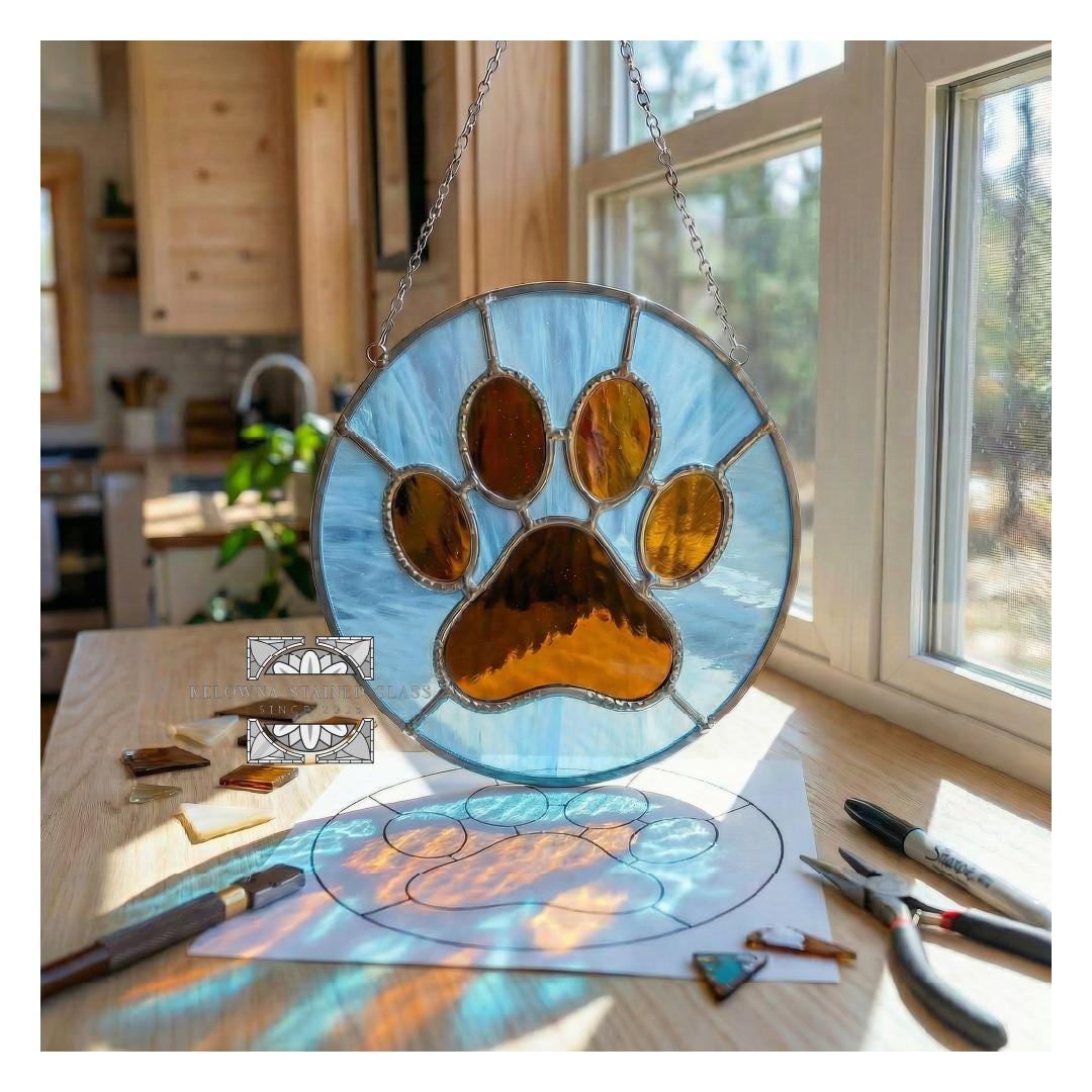 Add a touch of puppy love and canine devotion to your stained glass collection with this meaningful paw print design. Happy crafting!