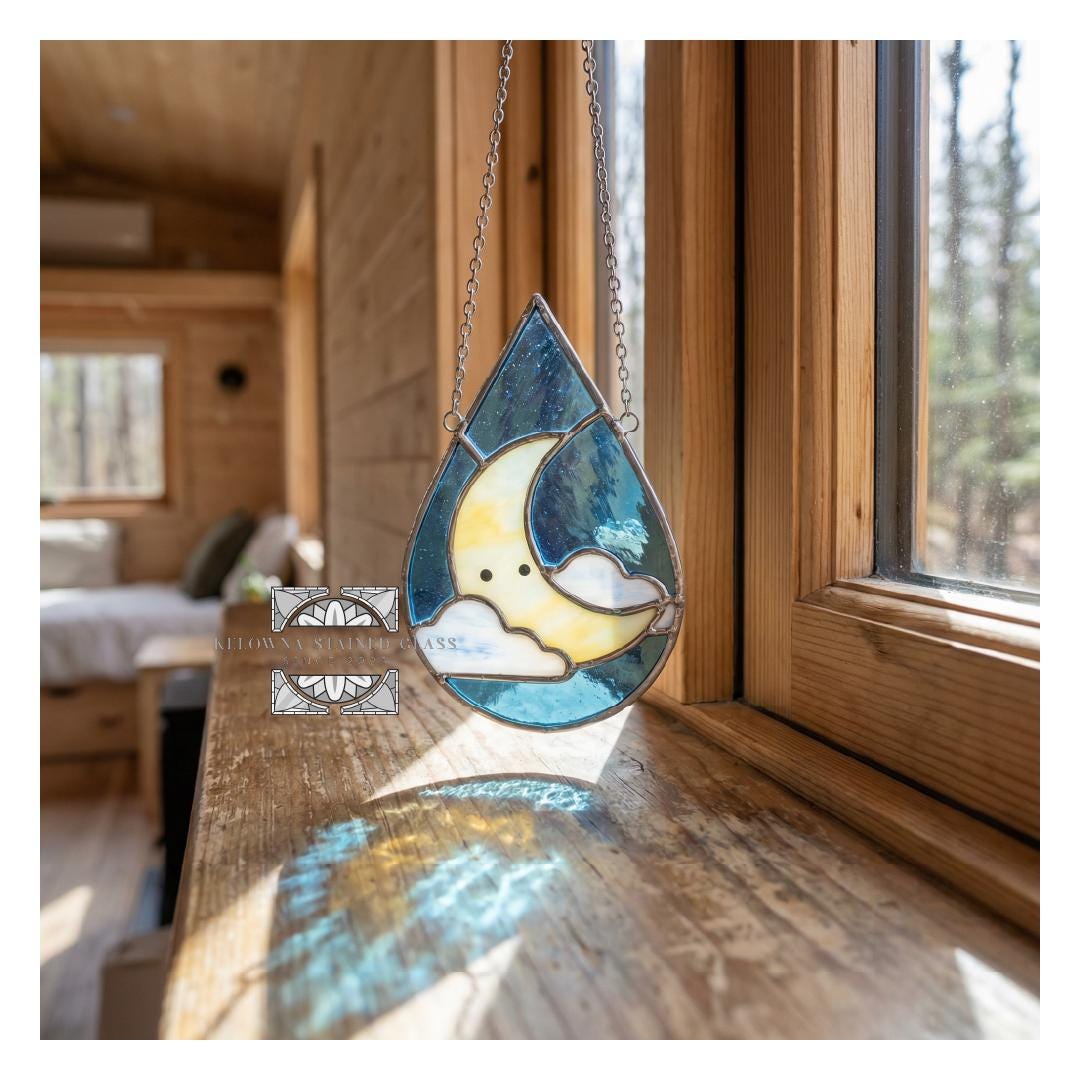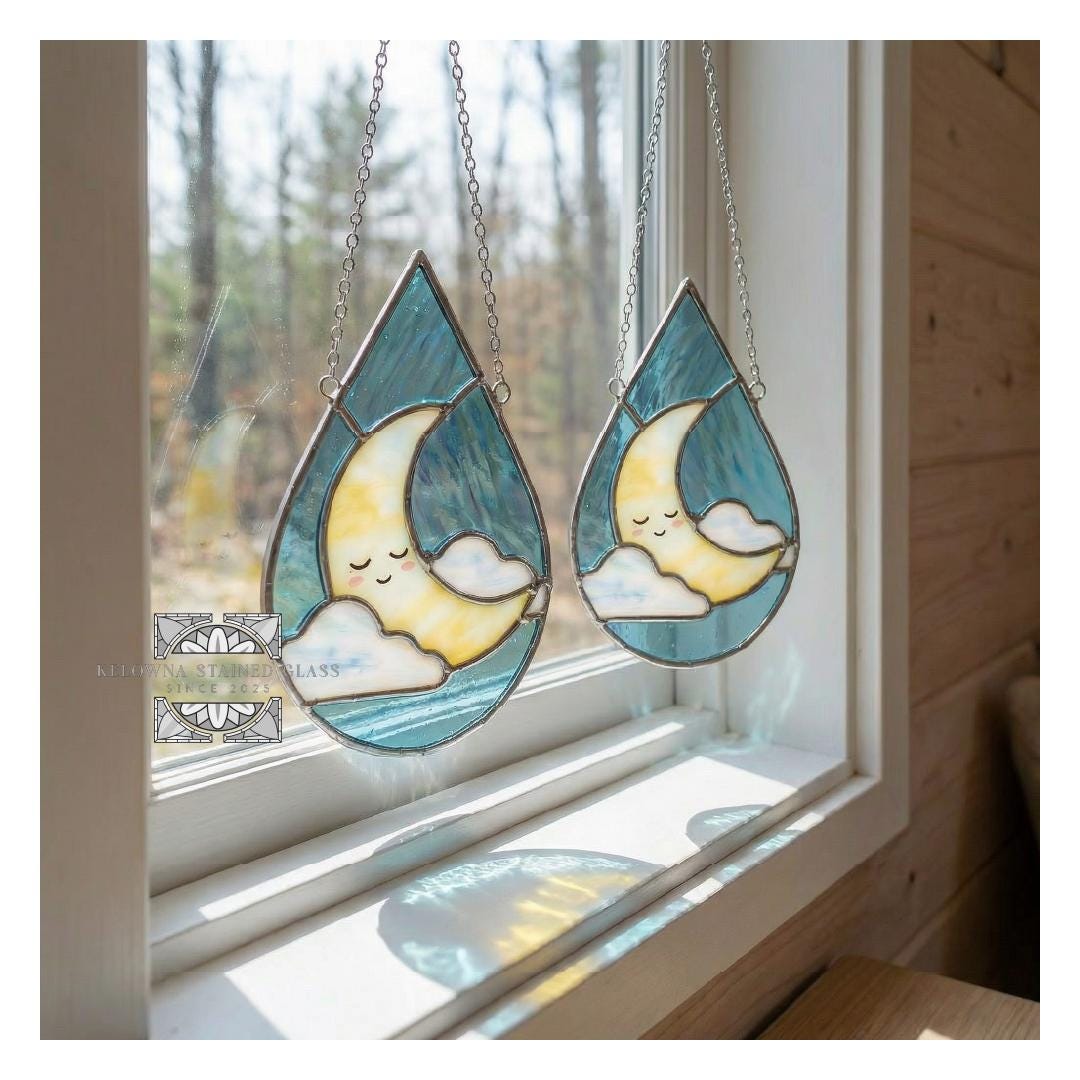 Illuminate your space with celestial beauty using this 6 x 9.4 inch and 4.5 by 7.1 inch Tear Drop Moon stained glass pattern! Designed for both beginners and experienced artists, this digital pattern adds a graceful, dreamy touch to your stained-glass projects.