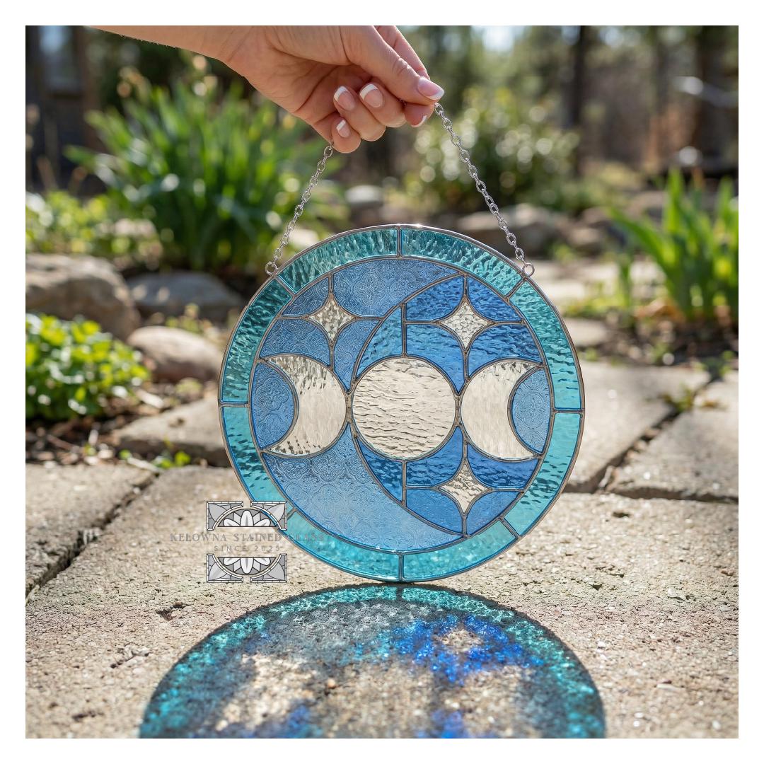 Illuminate your space with celestial elegance using this Moon Phases Stained Glass Pattern, available in two circular sizes: 8.3 inches (21 cm) and 10.5 inches (26.7 cm) in diameter. This digital design beautifully captures the progression of the moon’s phases in a striking round layout—perfect for sun catchers, window art, or unique handmade gifts.