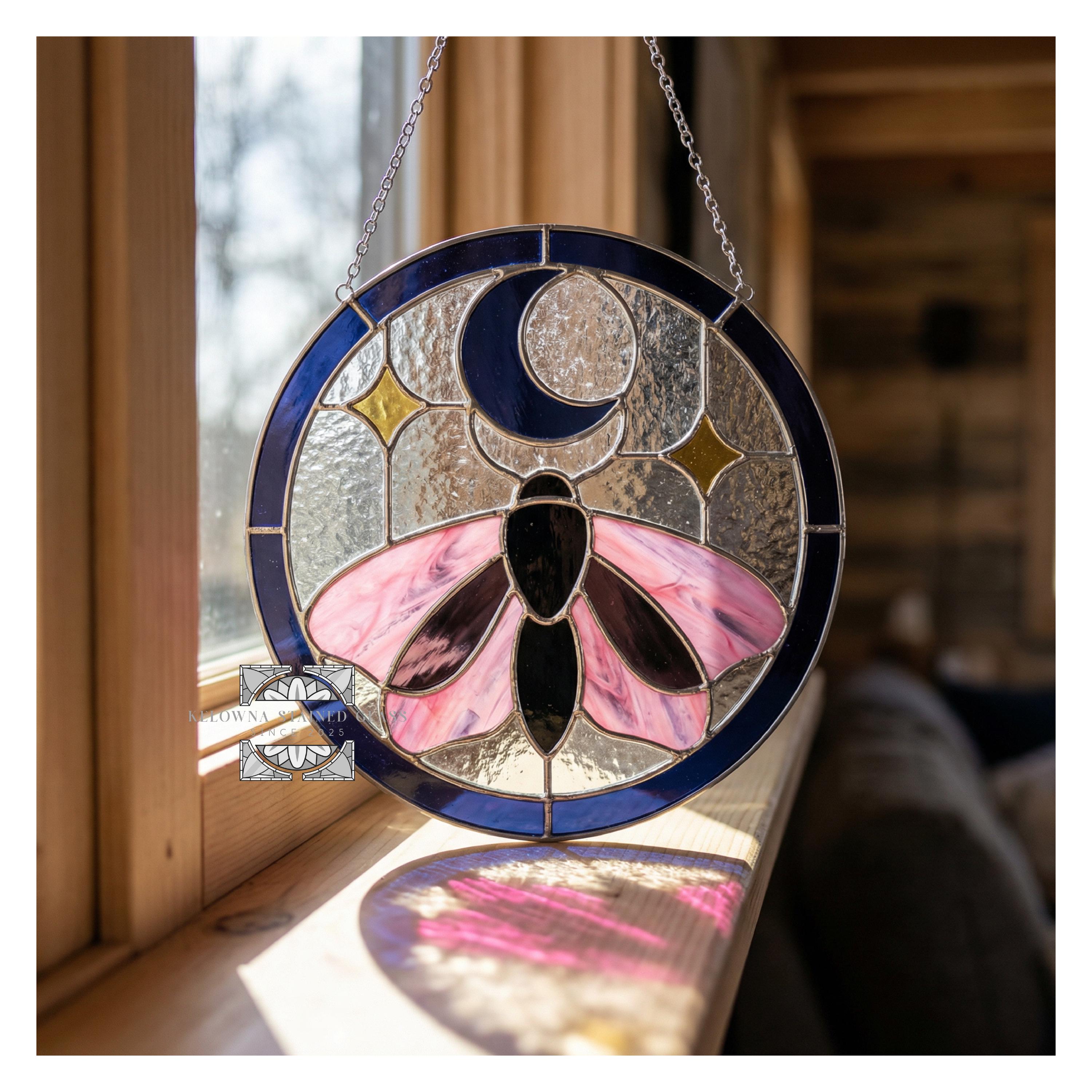 Add mystical charm to your glass art with this Stained Glass Moth, Moon, and Stars Pattern, available in two round sizes: 8.3 inches (21 cm) and 10.5 inches (26.7 cm). Designed for intermediate crafters, this digital pattern features an enchanting moth surrounded by a crescent moon and twinkling stars—perfect for sun catchers, window panels, or celestial-inspired gifts.
